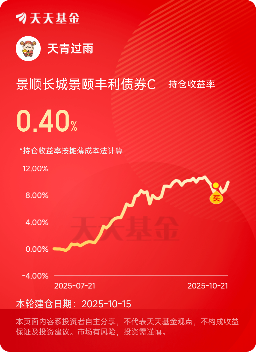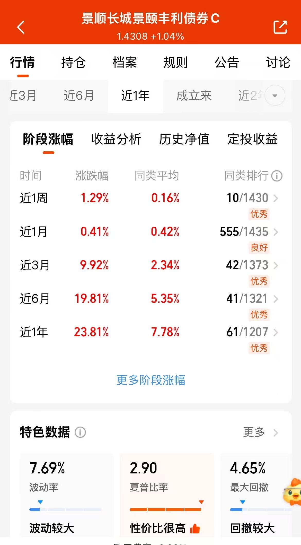 景颐丰利昨天收涨1.04%,今天继续反弹了,还好一直拿着,没错过反弹$景顺长城景