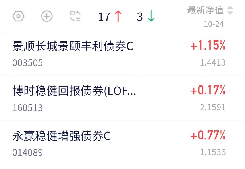 伙伴们,上周五股市行情反弹,股债行情叠加,又见恐龙蛋了,$景顺长城景颐丰利债券C(OTCFUND|003505)$上周五强势收蛋115个,他是混债基金股票带了点科技,近1年25%,比混债收蛋巨巨巨多。