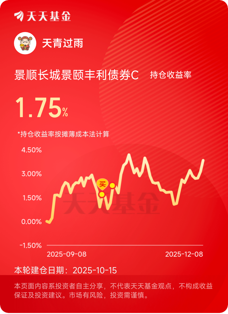 #券商行业迎利好:杠杆上限“松绑”#最近表现给力,今天估值继续涨,冲击4连涨,反弹起来给力,近1年涨幅25%$景顺长城景颐丰利债券C$#晒收益#