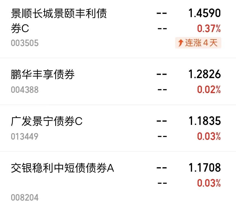 今天债市继续回暖啦,最近调整时间比较长,纯债连续的碎蛋,还好混合债基近期表现优秀,进可攻退可守,来看看这几个债基昨日收蛋情况