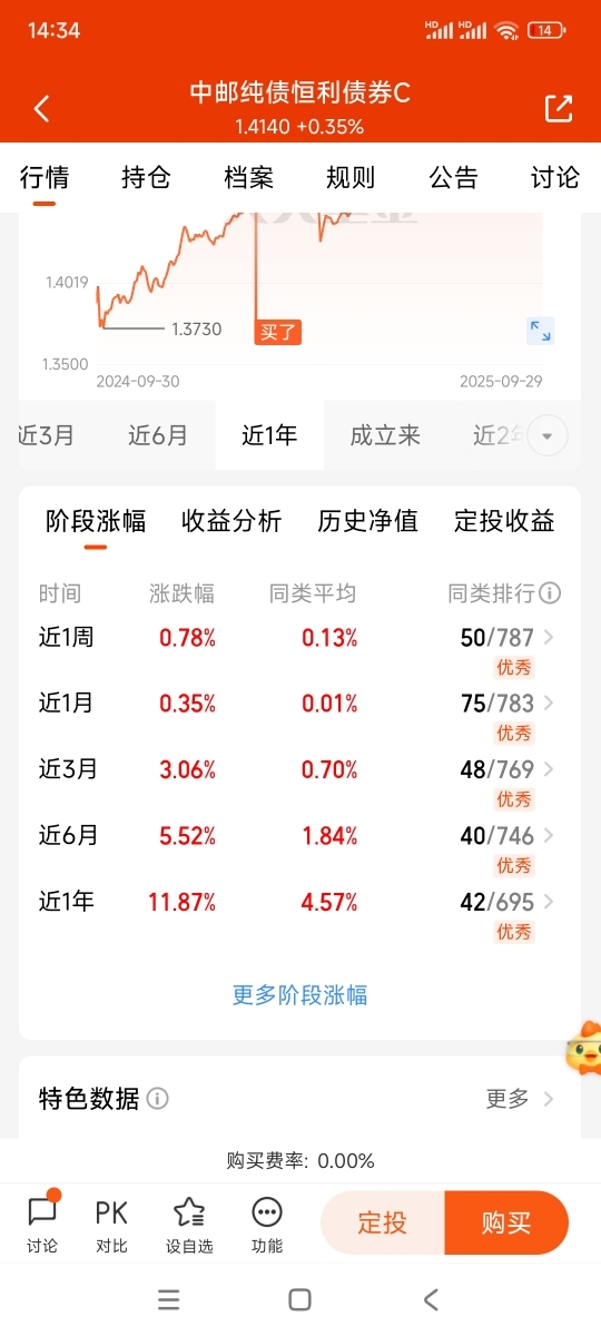 担心混债波动大?$中邮纯债恒利债券C$只布局可转债与纯债,波动更温和。0.3%管