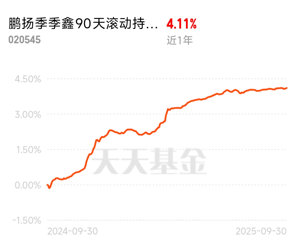 已经被$鹏扬季季鑫90天滚动持有债券A$圈粉了,这一轮债市波动,季季鑫展现出很强
