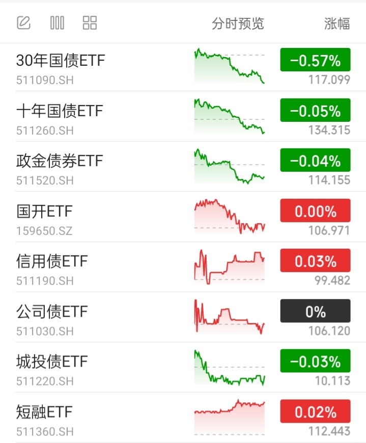 信用债ETF、公司债ETF、城投债ETF,代表信用债基。2平1涨