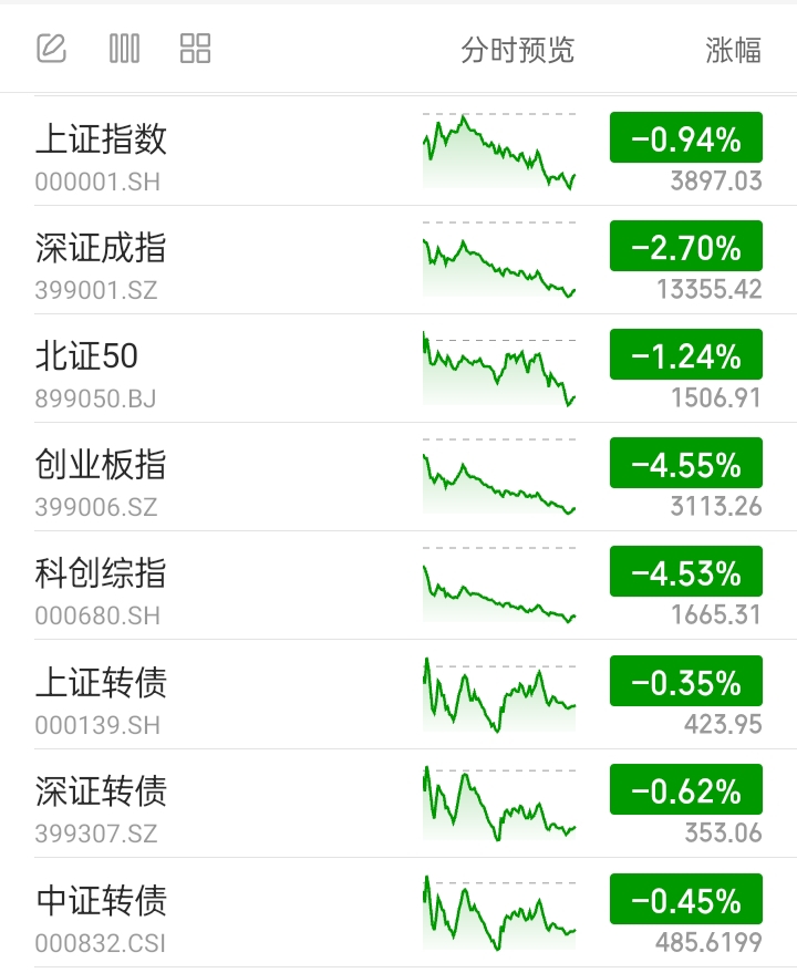 A股市场重要指数:全部下跌。今天偏股混基可能下跌。