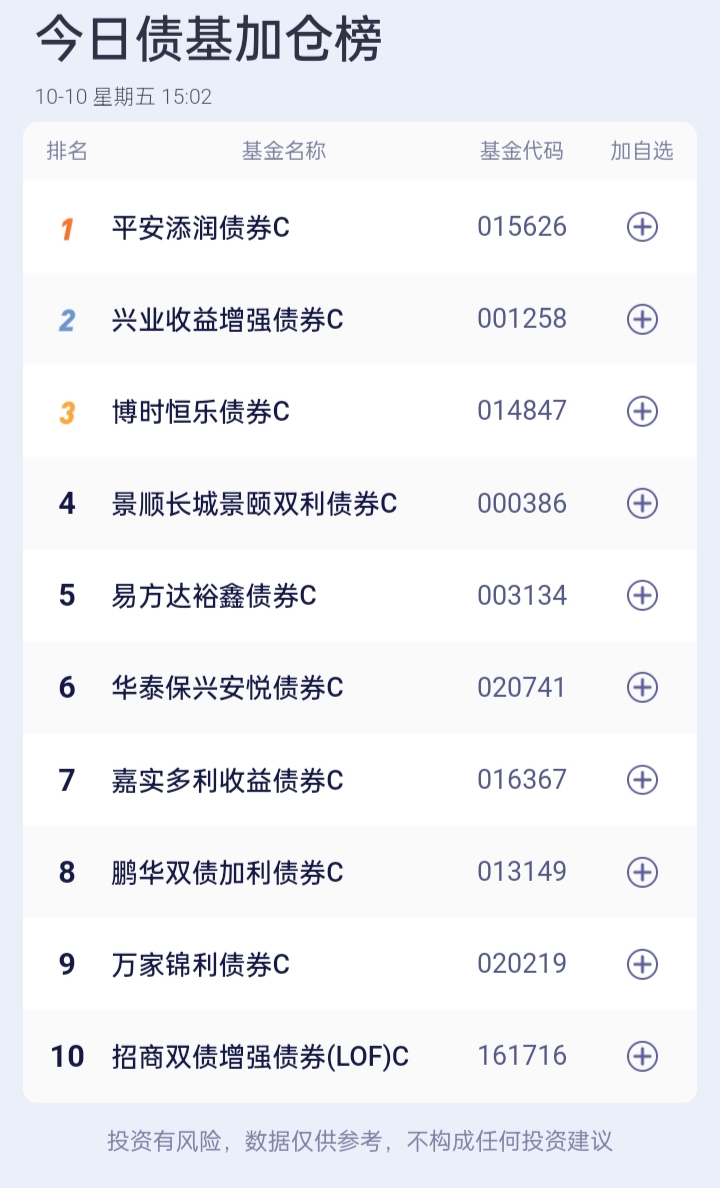 $华泰保兴安悦债券C(OTCFUND|020741)$。$南方中债7-10年国开行债券指数E(OTCFUND|013594)$。$华泰保兴安悦债券A(OTCFUND|007540)$。$永赢稳健增强债券C(OTCFUND|014089)$。$东方添益债券(OTCFUND|400030)$。$方正富邦鸿远债券C(OTCFUND|015909)$。$南方中债7-10年国开行债券指数A(OTCFUND|006961)$。$易方达增强回报债券A(OTCFUND|110017)$。$汇添富多元收益债券C(OTCFUND|470011)$。$国泰惠丰纯债债券A(OTCFUND|007214)$