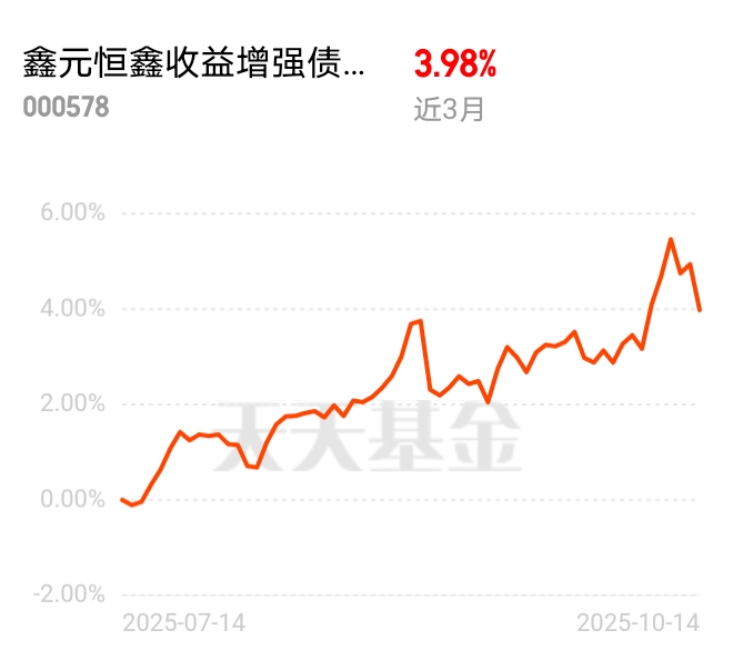 这段时间机构资金都往债基涌,行情错不了。鑫元恒鑫收益增强债券A近3个月收益3.9