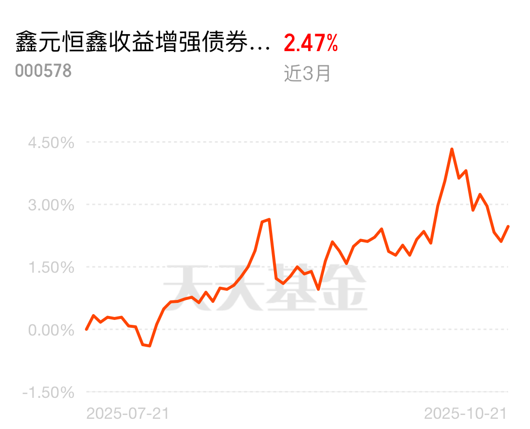 看最近债市走势,利率在低位震荡,适合捡稳健收益。鑫元恒鑫收益增强债券A近3个月有