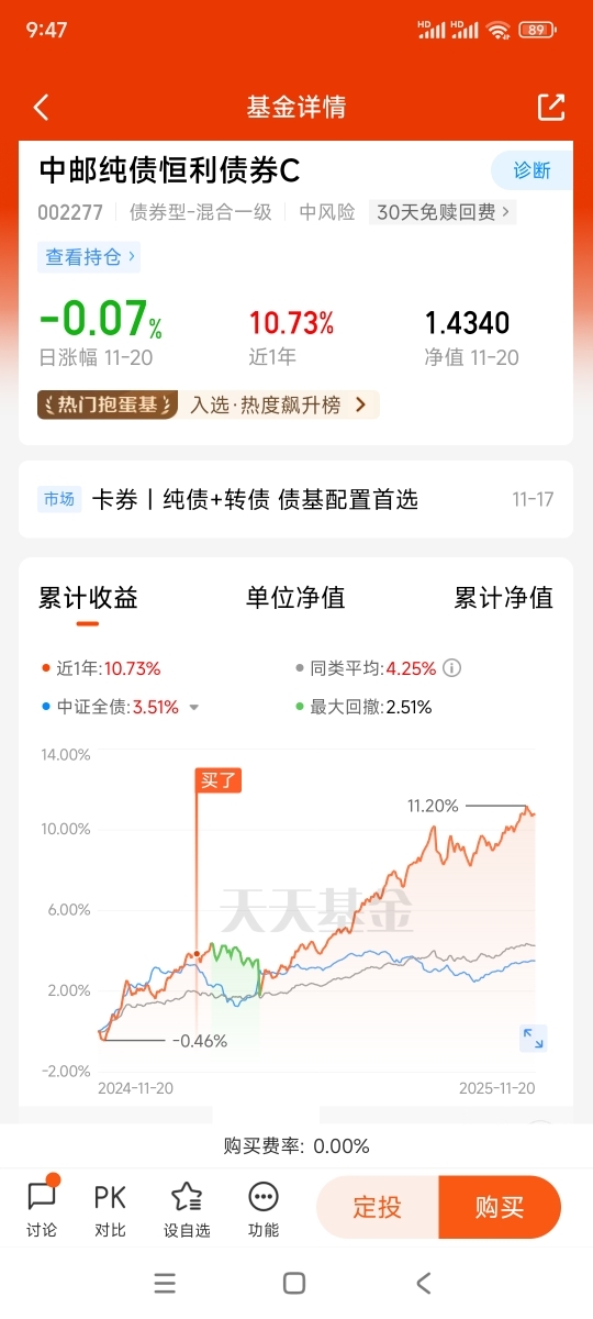0.3%管理费横扫混债圈!$中邮纯债恒利债券C$ 专注可转债+纯债波动小,纯债转混债无缝衔接,近一年1000多蛋+靠前业绩,稳妥不踩雷。