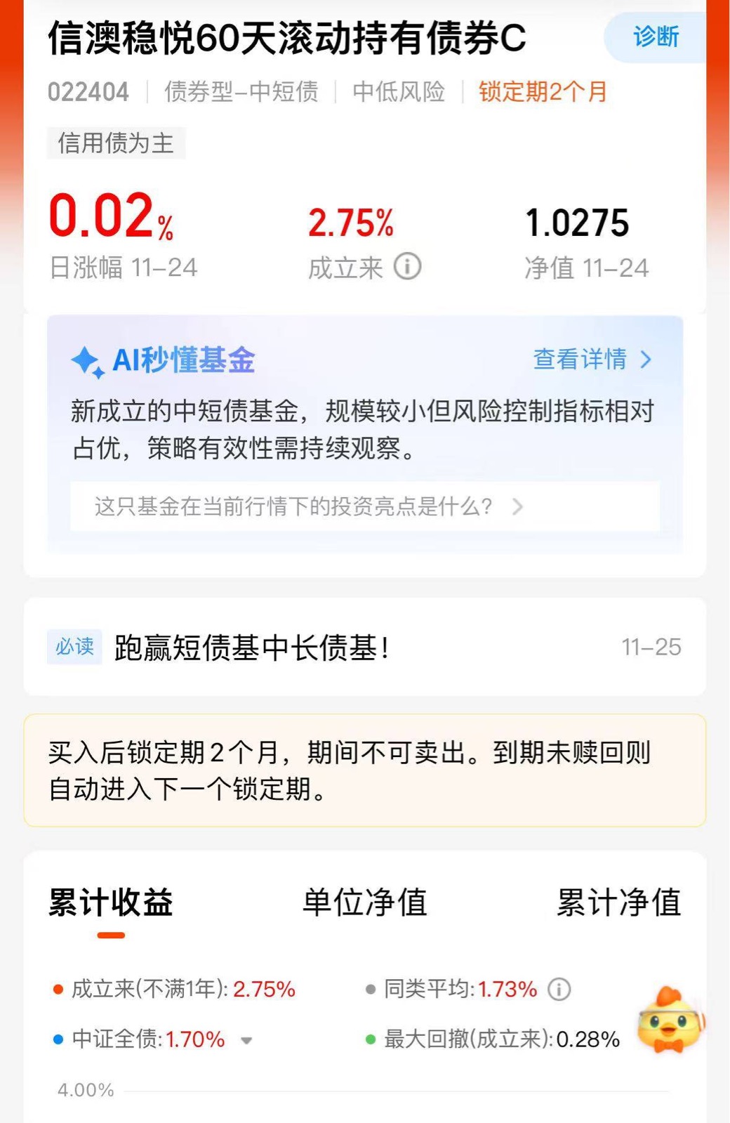 想要多点“蛋”?$信澳稳悦60天滚动持有债券C$真是生蛋小能手今年来275个,一