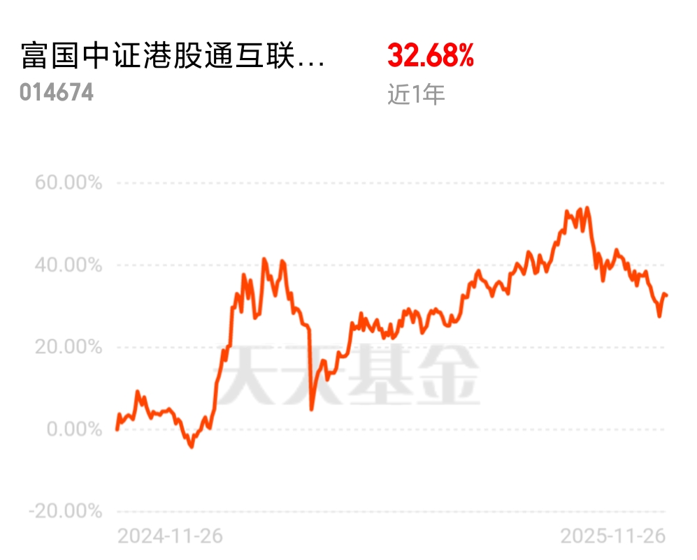 这段时间鹏华丰禄波动不大,就看了看富国中证港股通互联网ETF联接C近1周涨1.1%、近1年33%,跑赢多数同类多数同类;106亿大盘子,布局港股电商、社交、游戏和云计算,政策回暖叠加估值低位,南向资金也在流入,领域里确实靠前。