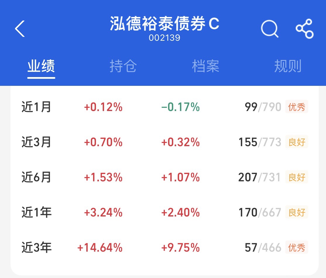 裕泰今天5个蛋个蛋,纯债不含股,还是稳稳的,经理能力不错,平替短债,性价比高,一年3.24%,体验好!不错。
