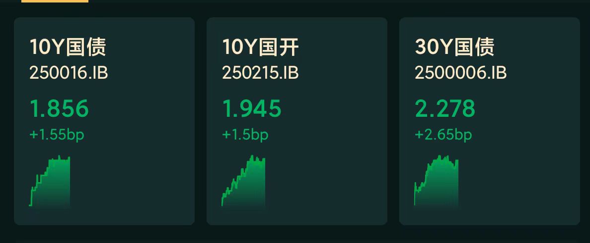 十年期国债收益率:1.856%,+1.55BP(国债收益率越跌,债市越涨)