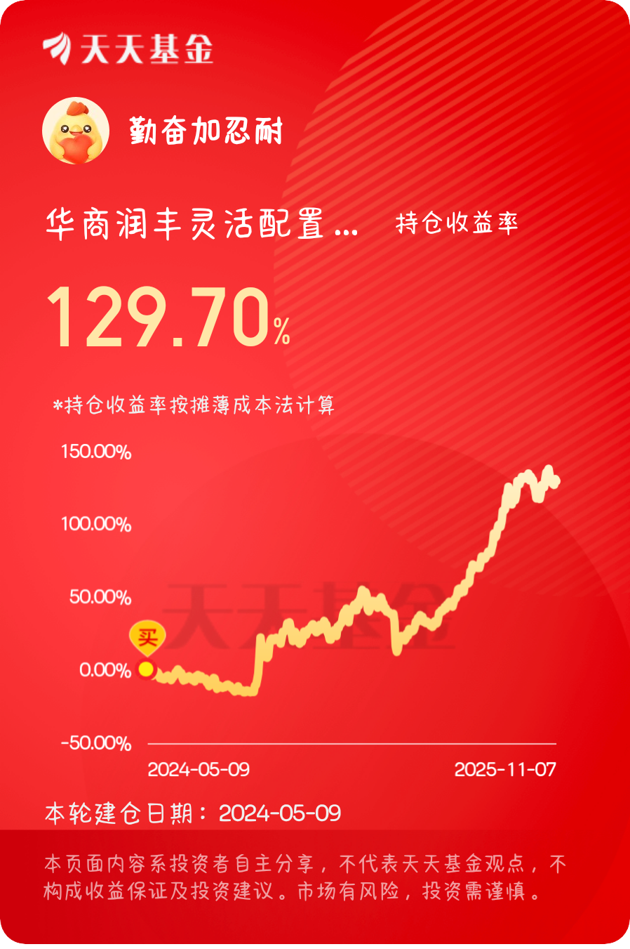 半年涨超72个点,业绩挺优秀的,看长期应该更好吧$华商润丰灵活配置混合A$ #晒收益#