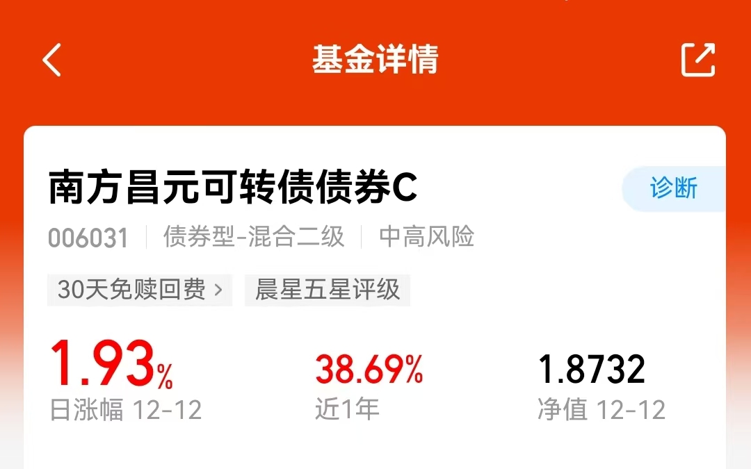 为什么$南方昌元可转债债券C$(006031)值得关注?就三点:一是业绩硬,近半年涨32%,同类排名第1;二是稳,主投可转债,利用其“进可攻、退可守”的特性,波动比股票小;三是经理强,刘文良管理经验丰富,如果你觉得眼下行情有机会,但又不想太折腾,想找个相对稳当点的方式参与,这个基金确实可以多了解一下。毕竟业绩和策略都摆在那里,关键是波动相对可控,说不定就是个省心又讨巧的选择。#【跨年坦白局】提问金梓才、陈果#