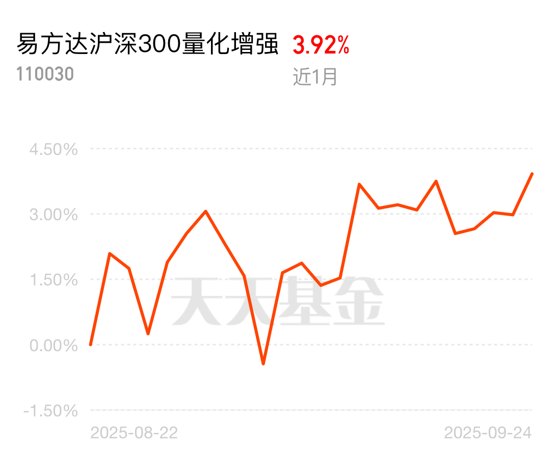 最近行业轮动快,热点难追,易方达沪深300量化增强合适。近3个月18.06%,均
