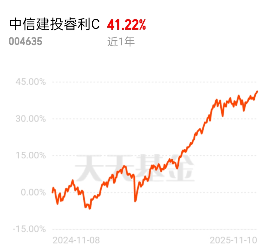 除了广发创业板ETF联接C,我还配了点中信建投睿利C,顺周期+机器人+专精特新方向,近1年涨40%,回本快、周胜率超六成,拿得安心。
