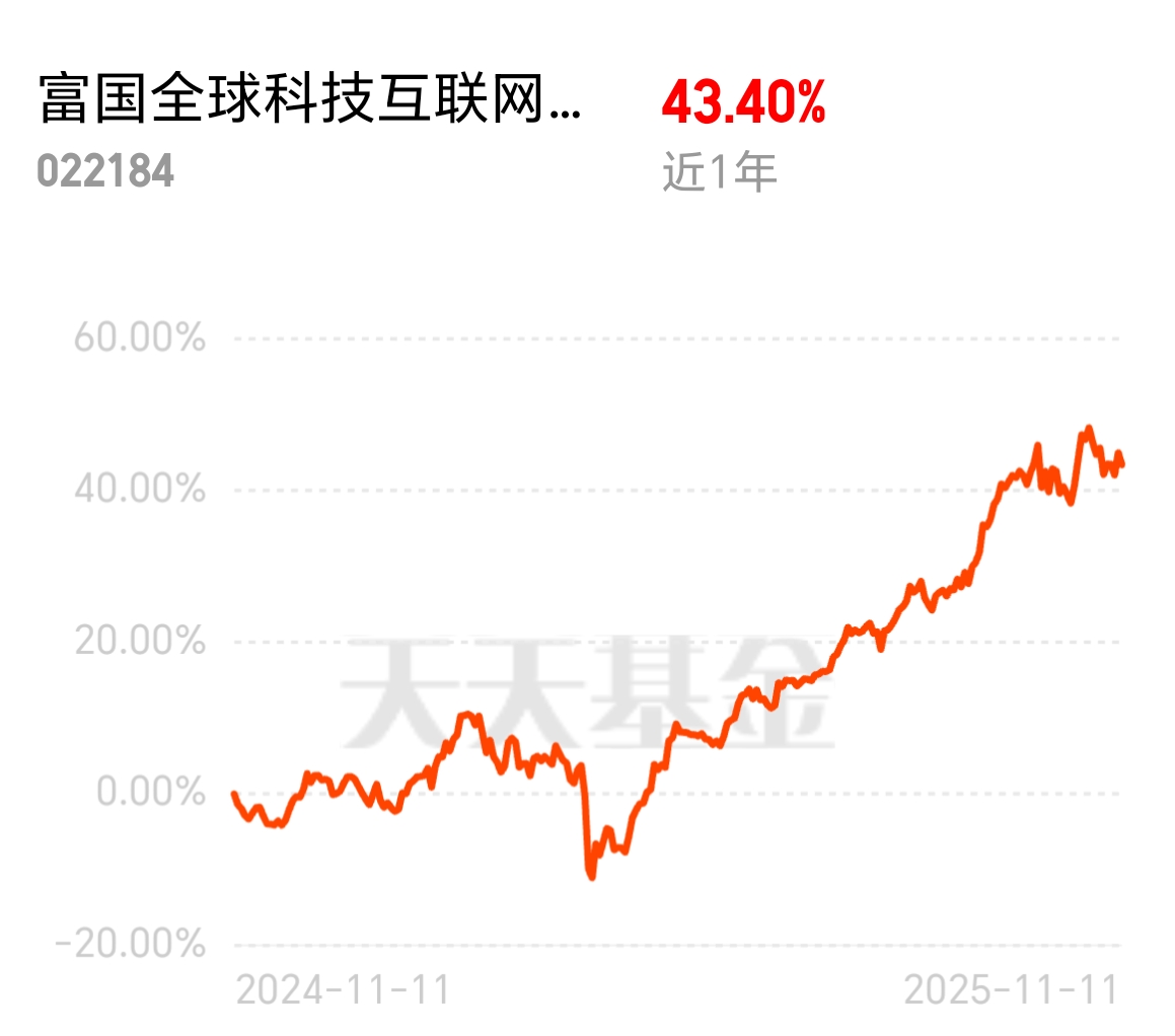 $富国全球科技互联网股票(QDII)C$,近一年涨了43%,跑赢纳指还有额度,全