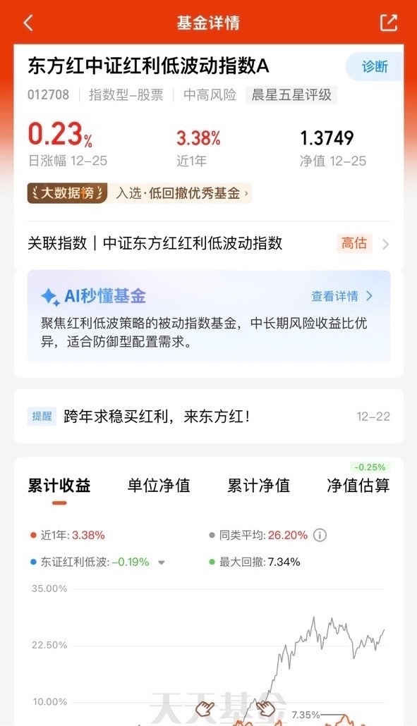 我就喜欢东方红红利低波这种稳稳的风格,它选的企业现金流都特别健康,年年都能分红,拿着它特别安心。