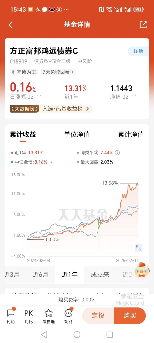 打卡第2天+方正富邦基金旗下的鸿远债券与睿利纯债,作为一对优势互补的固定收益产品