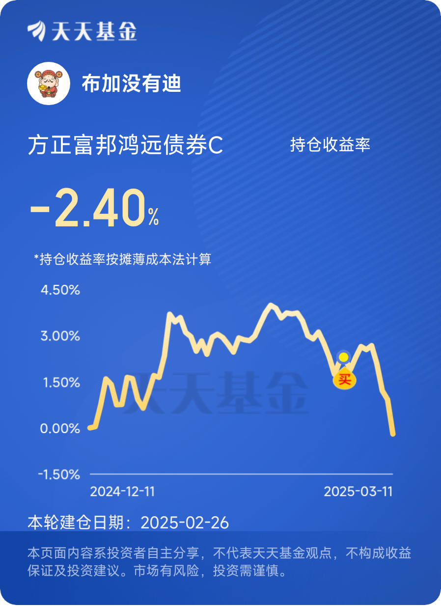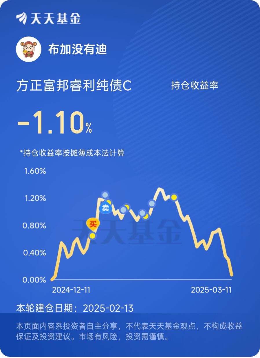 打卡第二十九天。截至2025年3月11日,方正富邦睿利纯债C最新净值为1.213