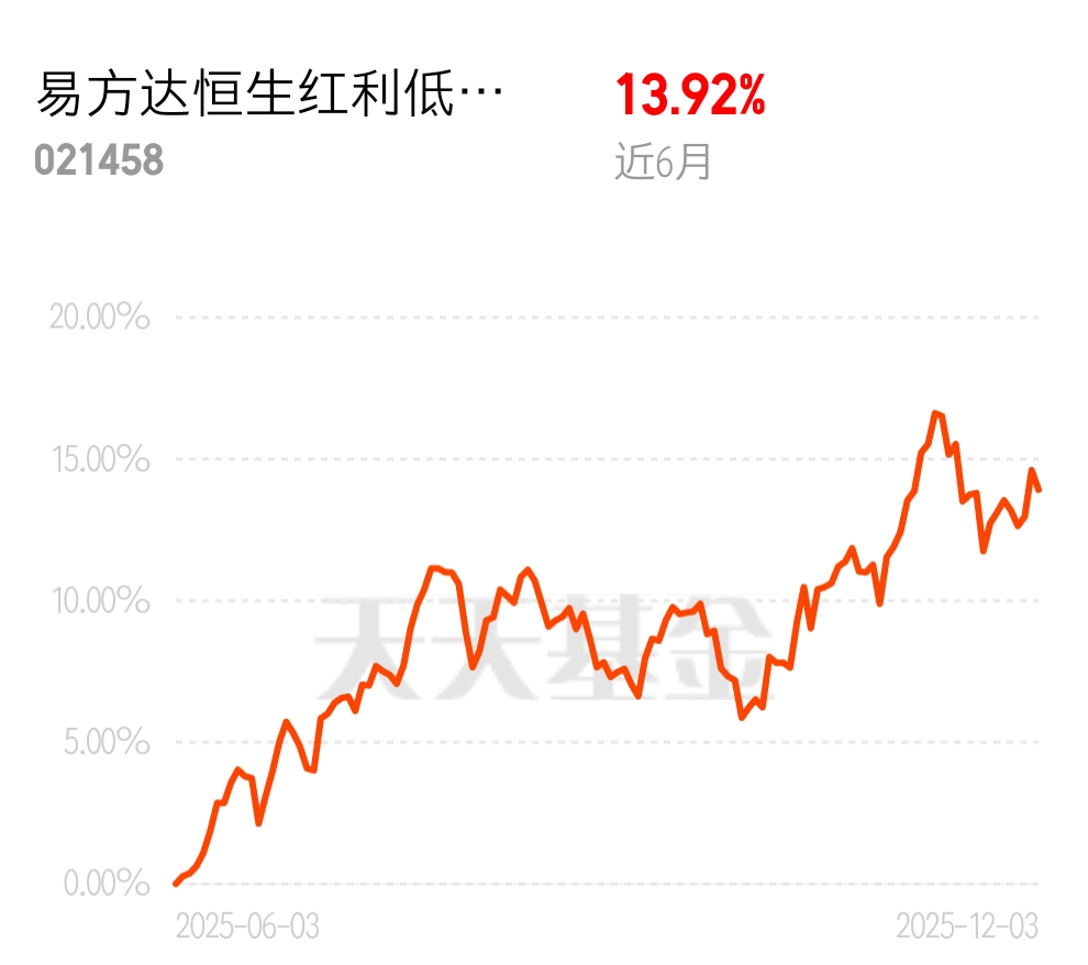 港股通红利 ETF 连续二十多个交易日净流入,累计吸金好几亿,市场热度很高。易方达恒生红利低波 ETF 联接 C 近 6 个月 13.92%,顺势而为,赚钱更轻松。 $易方达恒生红利低波ETF联接C$