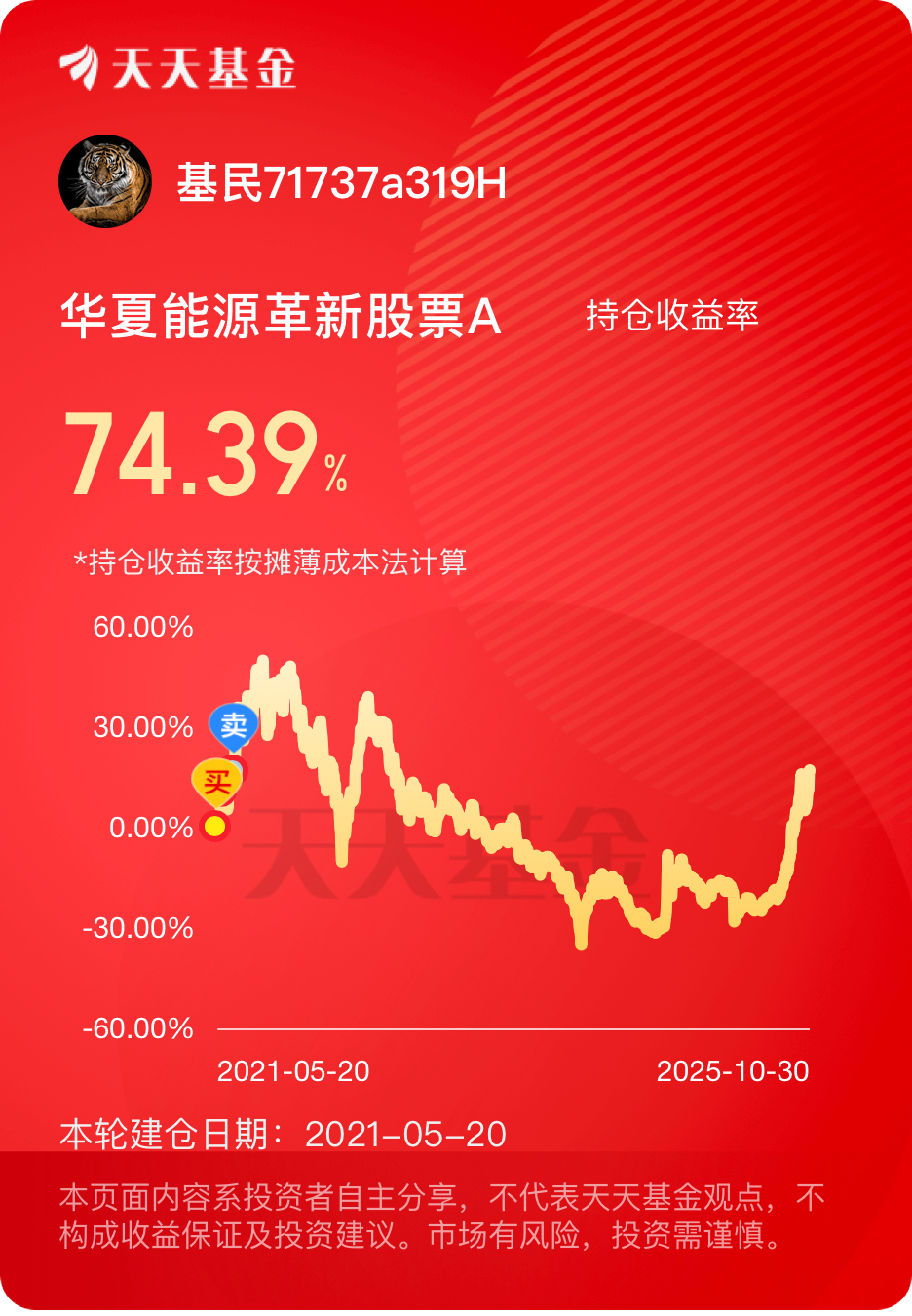4.5年了,有感情的, 当时卖过一部分,剩余的没在管,经历了两波新能源牛市,后来就迎来了熊市。今年想不到能大涨那么多,新经理挺好的,感觉很稳,红多绿少,最近面临大盘回调,大家在4000点附近莫名心慌。想一走了之。