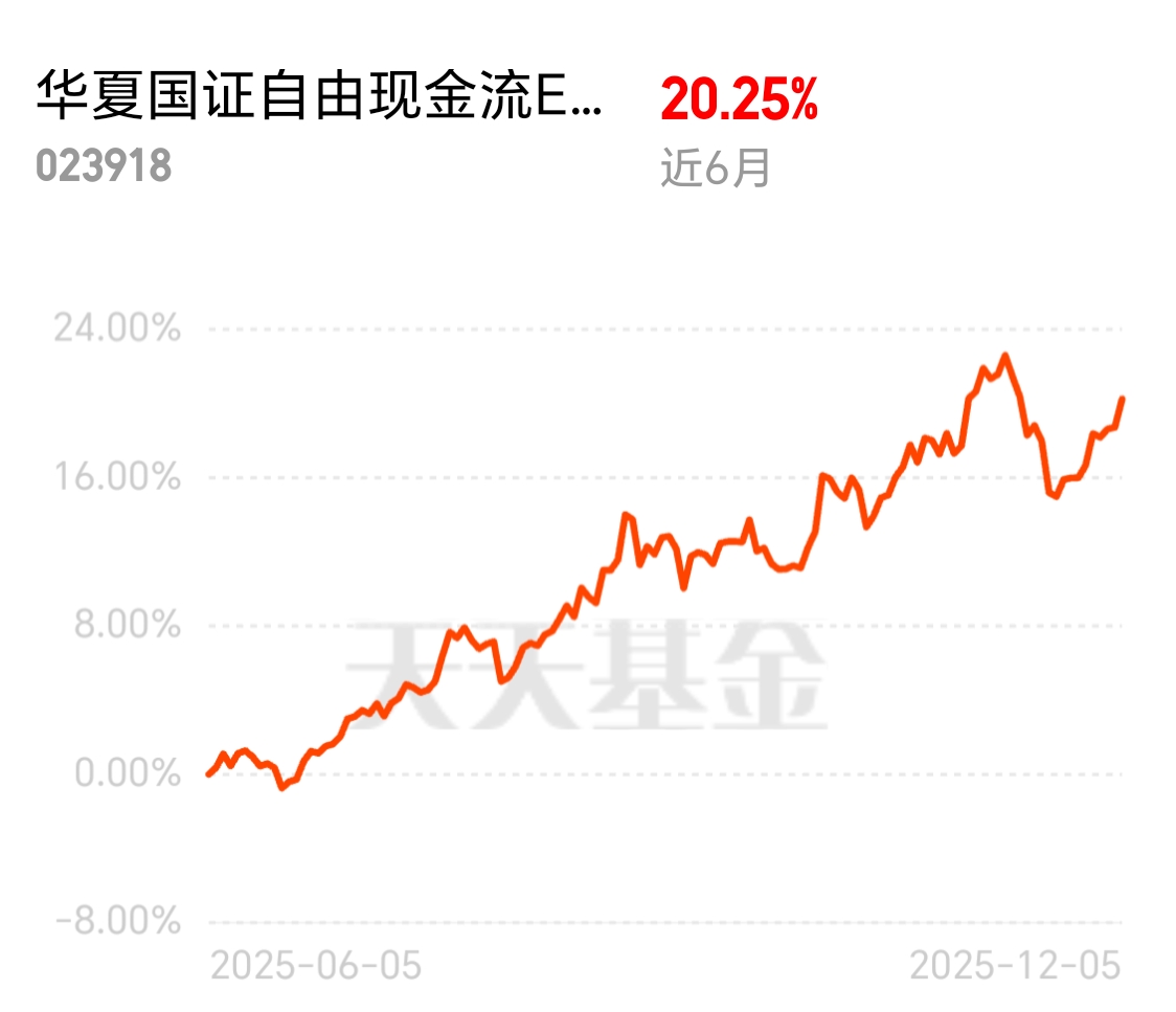 上周五单日收益1.29%,连红3天,市场好增收有,调整期间防御性强,市场震荡的时候用来避险还是不错的,$华夏国证自由现金流ETF发起式联接C$正好是加仓的好时机
