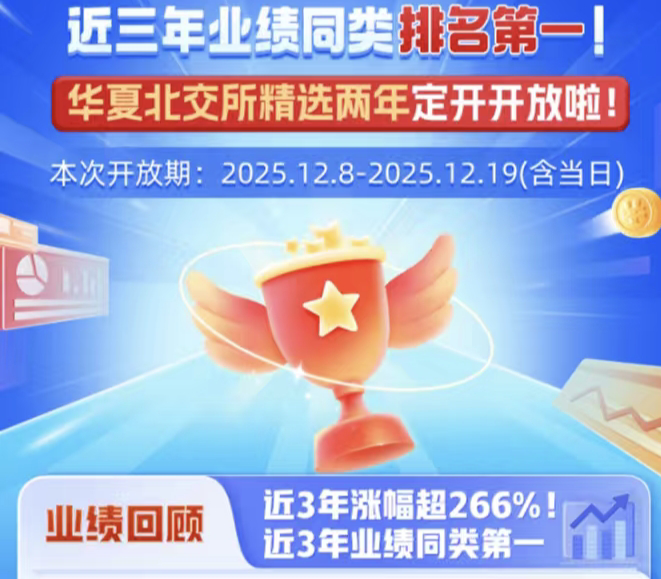 昨天调整入手了$华夏北交所精选两年定开混合发起式$,近3年266%业绩同类排名第
