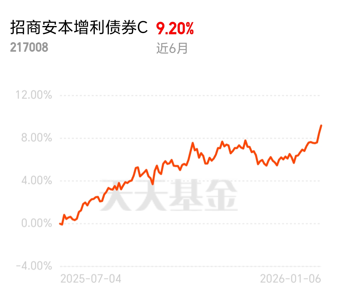 短债基金收益上限低,中长期债基才是收益增强关键。招商安本增利债券 C 近 6 月 9.20%,在震荡市中表现能打,闲钱投进去,比放余额宝赚得多太多。$招商安本增利债券C$