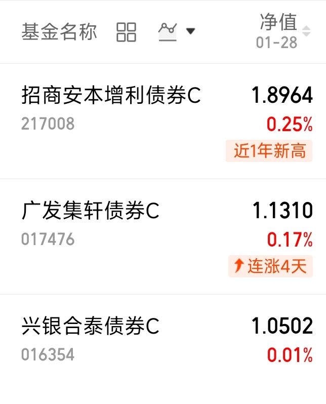 想给资产做份安全备份,选偏债基金就对了!这款产品风格稳健,不用费心折腾打理,行情波动时也能稳得住,既能守住资产基本盘,又能从容应对市场突发情况,妥妥的安心之选。$招商安本增利债券C(OTCFUND|217008)$昨天上涨0.25%。