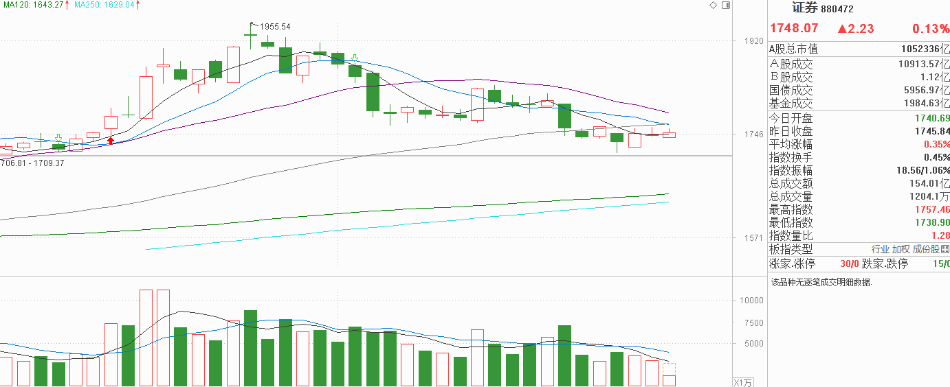 家人们,证券这波可真是让人摸不着头脑!昨天窄幅冲高时并没有突破60天线并回落至5天线附近,今天还是围绕5天线窄幅震荡,说白了就是9月4号至10号的翻板,唯一不同的是上一次证券的震荡在60天线上方,现在6天震荡证券在60天线下方。由于已经4天明确失守60天线,我觉得证券的走势是极弱的,节前资金离场意愿很强,不排除还会压制证券走弱,23号探底下影线不一定能形成支撑。昨天我认为,证券要走强,起码得出现明确的资金流入,11号一根中阳线无法扭转趋势,就必须等两天连续中阳,现在第一根中阳线还没有出现,我认为节前就不用关注这个方向了。横向震荡并可不代表止跌企稳,没资金参与还有久盘必跌的风险,我觉得没有必要在这种位置提前表态。