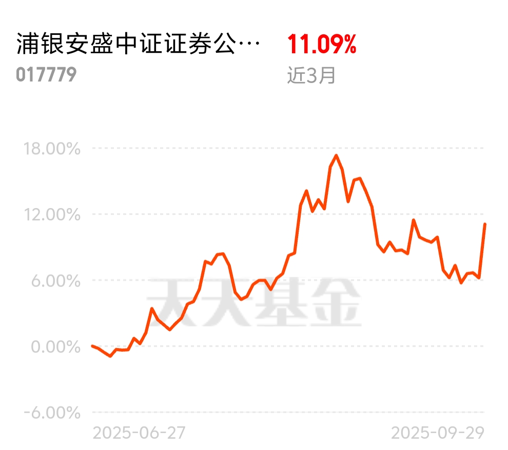 牛市里券商肯定会拉起来的,也是全市场不多的业绩好估值低的板块。$浦银安盛中证证券公司30ETF联接C$ 投券商龙头,中证证券公司30指数是A股三大金融权重之一。
