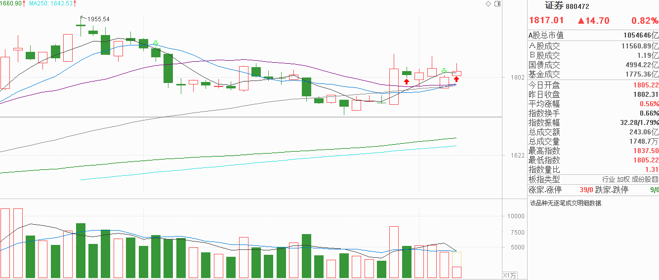 我的天呐家人们!证券昨天低开在60天线后回升,已经消化了上周五冲高回落下影线带来的回踩要求,在昨天这种利空释放的过程中,证券能守住60天线不失,我觉得后期很难再出现类似的大型利空打击,即60天线应该是证券板块的箱底支撑区域。对于证券的箱顶,我认为还是8月27号创出的高位。今天证券小阳反弹收复5天线,位置才刚离开60天线不远,如果没有做多资金流入,证券大不了重回60天线继续等待机会,而真有资金流入的话,证券目前位于箱底附近无疑就是比较好的参与机会。资金是否流入这是一个将来时期的信号,未出现前可以先观望,也可以先潜伏,但资金一旦确认流入,就必须马上跟随主力一起行动。