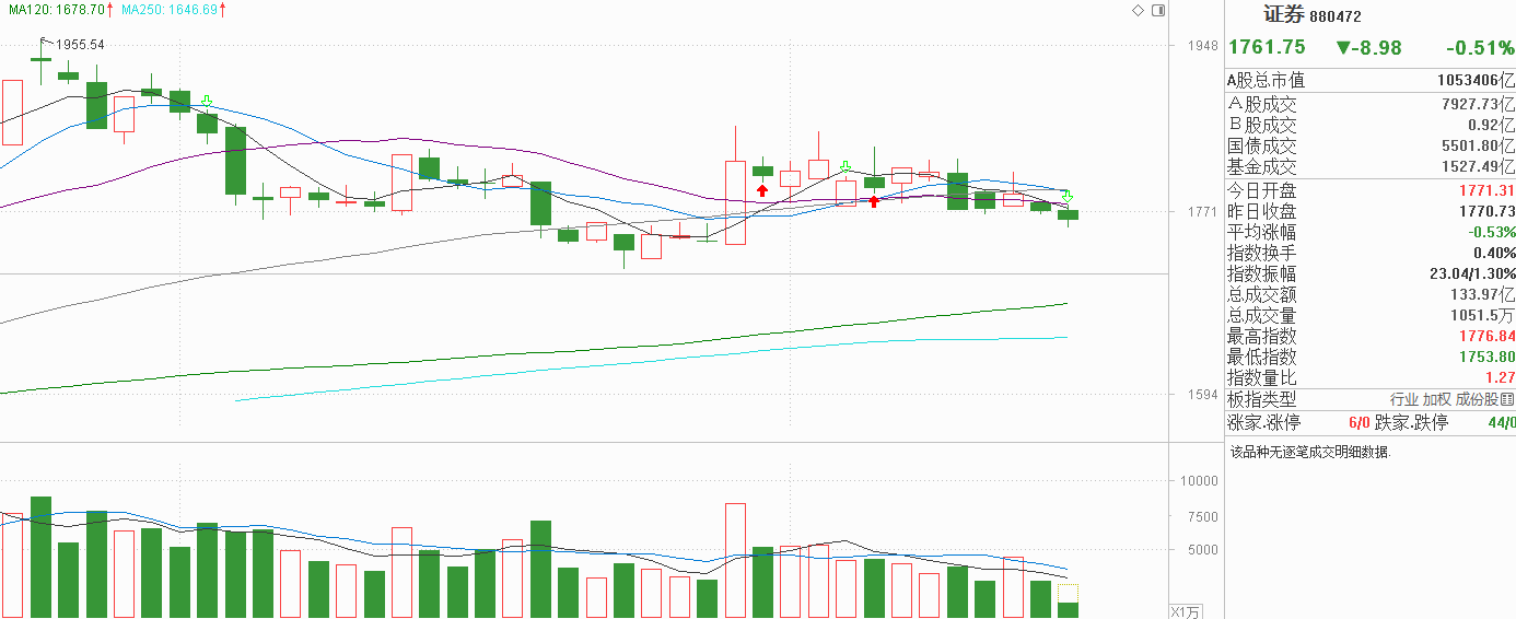 证券走弱:被20天线死死压住!抛压阴霾不散,再跌就得找支撑了