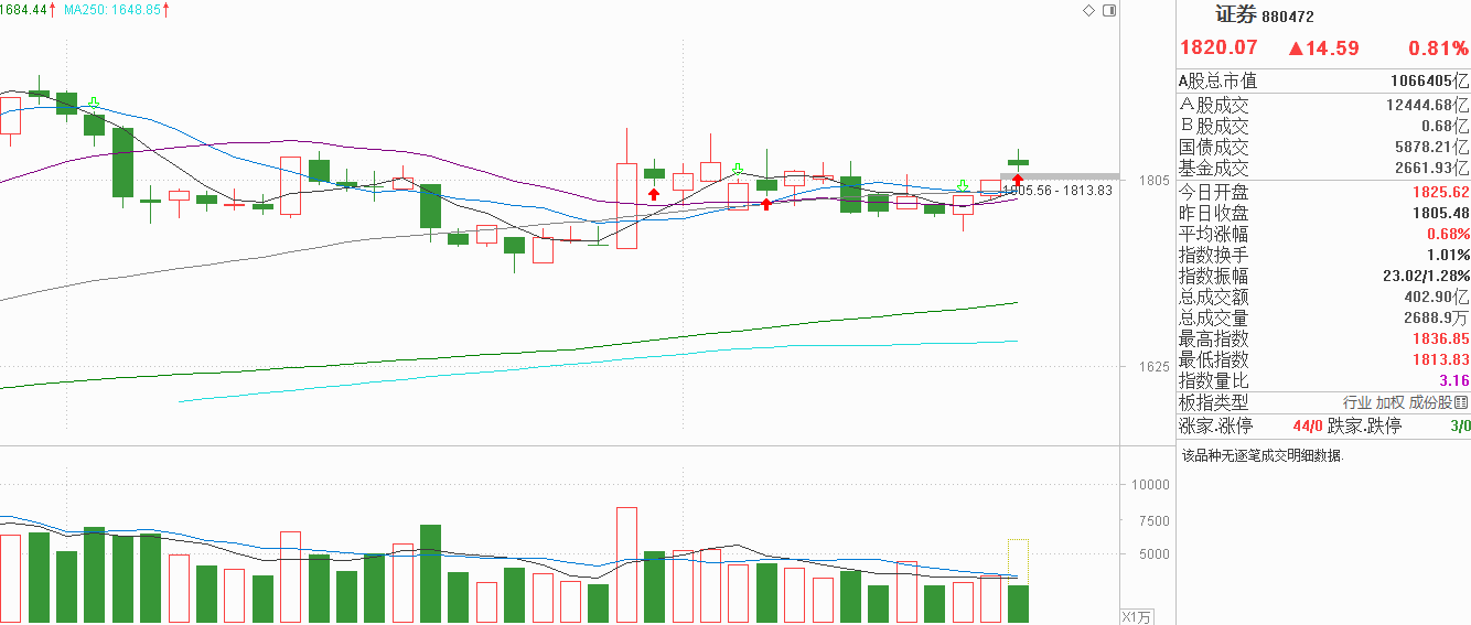 看好证券的朋友们,都给我竖起耳朵听好!上周五小阳反弹收复60天线回到所有均线的上方,但未改变自9月29号大阳线后的横向波动,只能当成是震荡市。周末消息面明显偏暖,今天证券大幅高开后探底回升,虽然市场重心在上移,但未实现高开高走,更像是情绪回暖后的波动修复,有资金流出本质上它们也把证券当成是横向震荡。我认为证券近一个月的横盘筹码已经粘合,如果主力真的选择向上突破,就应该干脆利落的中阳反弹并创9月29号的高点,只要做多态度明显保留,我觉得要走强的概率并不大,当然,由于下方均线已经全部修复,要重新击穿也很难。对于证券来说,这就属于涨不起来,又跌不下去的尴尬局面,继续等待市场出现更新变化,即资金做多力度继续加大才能看好。