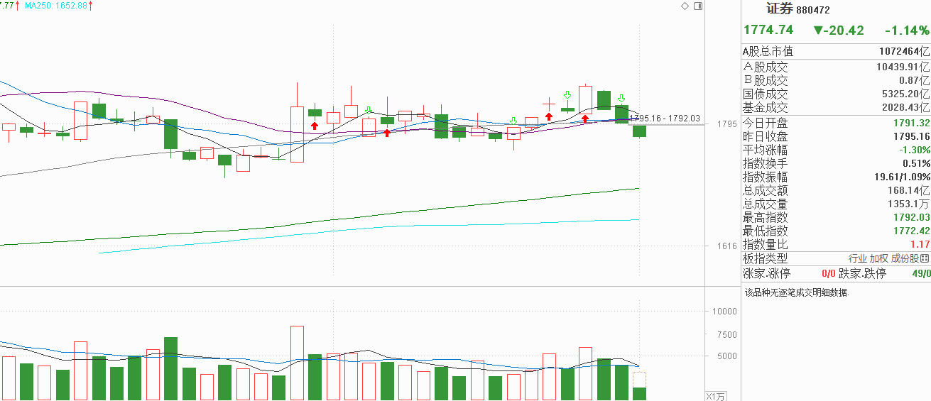 我的天呐!老铁们!证券上周五高开后单边走低把20天线击穿了,已经明确突破是没戏了,今天低开低走第三天单边回落,阴线力度比上涨时的阳线力度要大,说明抛压比较大。考虑到20天线、60天线粘合在一起,我觉得有些筹码本着小亏当赢的心态在发现证券无法出现突破行情时选择离场,导致了当下的走弱。证券三连阴其实上还在9月29号大阳线的区间内波动,并没有明显的涨势或跌势,现在抛压看起来大,但未击穿9月29号大阳线的低点,我认为还是震荡行情,到了箱底企稳的概率比较大,只不过现在资金流入的可信度很低,像上周三那样的一根中阳反弹,看起来就是主力在诱多,已经不值得信任了,如果没有持续的流入信号,证券大概率还会横向震荡下去,这也是现在还有抛压的原因:他们不玩了。