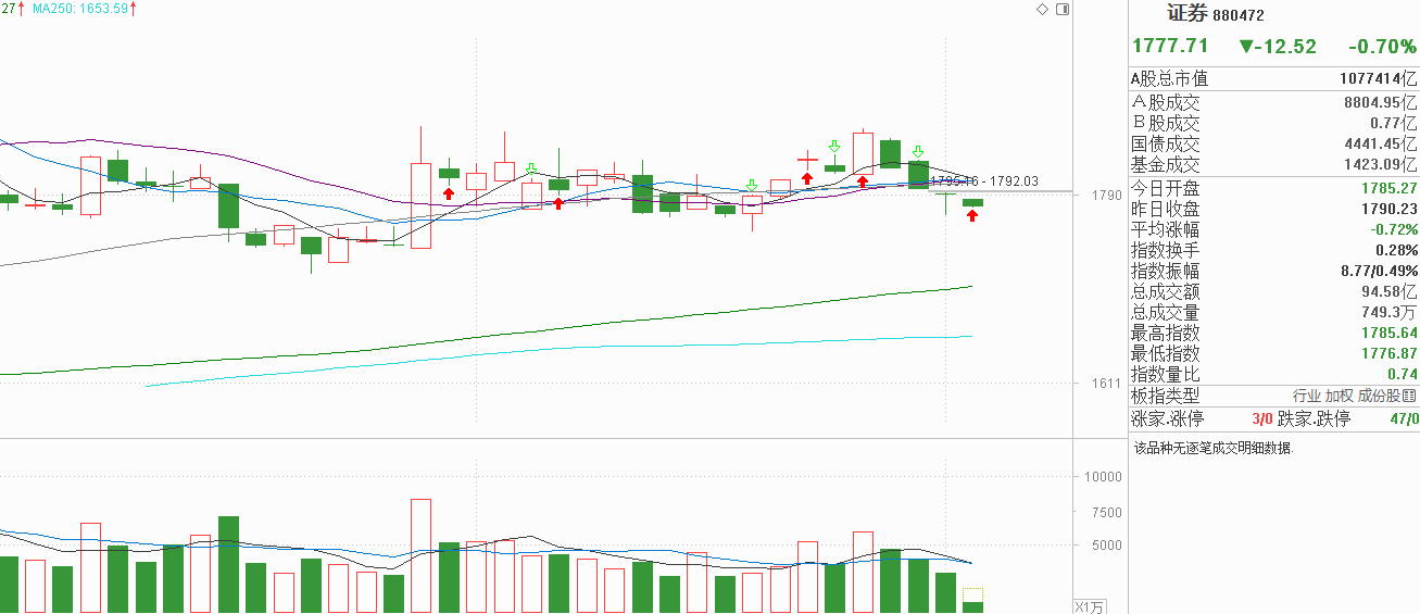 我的天呐!各位紧盯证券的铁子们,也被昨天给整不会了?低开低走小阴调整,尾盘探底回升收出下影线,连续回调三天后出现下影线,而且又回到10月横向震荡的平台下方,承接力出现后今天向上反弹是正常的,毕竟证券就是在9月29号大阳线内部波动,是箱体震荡的周期。但今天证券依然低开震荡,并没有因为昨天的下影线支撑继续上试阻力,表现就是不及预期。当下证券连续四天调整,市场重心继续在箱体内下移,虽然不是创新低,但可以看到没有做多的动力,抛压昨天基本已经出清,维持在60天线和20天线下方震荡是大概率事情。有一个风险还是要说的,我们现在盯着9月29号大阳线的箱体,但箱体总有失效的时候,如果证券一直在均线下方震荡形成下跌形态,向下破位的可能性就不能排除。就算证券依然在箱体内波动,9月29号的大阳线不大,踏准节奏也不会让你有超额收益,证券当下配置的性价比并不强。