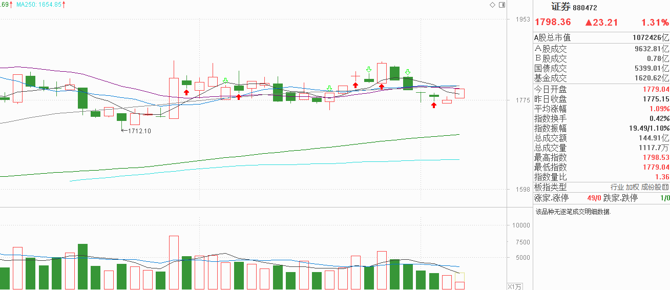 证券绝处逢生?低开高走收复5天线,假强真弱别被小阳线骗了!