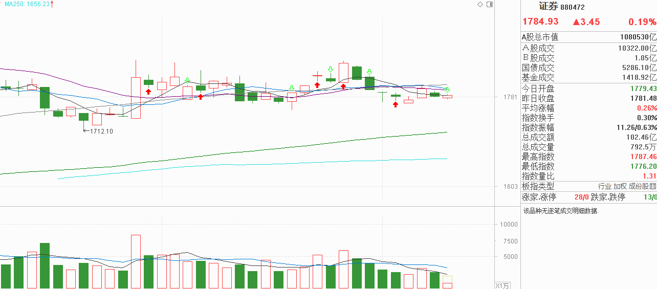 看好证券的朋友们,都给我听好了!上周五小阴调整并没有站稳5天线,不过没关系,证券的均线基本是粘合的,只要出现波动,失守与企稳都是瞬间就能完成,这种情况下看成是无序震荡或窄幅箱体波动也行。今天证券基本没有波动,意味着还在9月29日大阳线后形成的平台箱底附近。由于这个箱体已有2个月的基础,证券这种弱波动没有资金流出的信号,自然也就不会向下破位。而要出现反弹,在没有新增资金的情况下,反抽60天线估计就燃尽了。要说证券的估值我认为是比较低的,但一直是资金打压的对象,如果没有把这个惯性思维打破,即使出现反弹也不要信,资金持续流入才是关键所在。