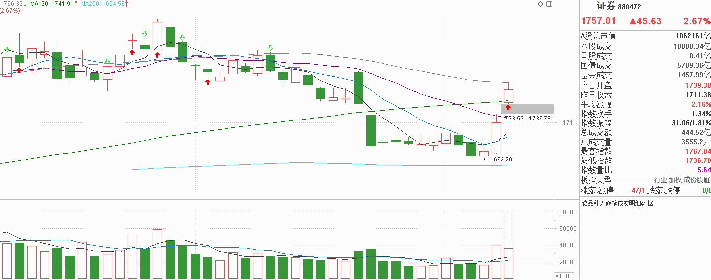 兄弟姐妹们,证券上周五尾盘异动中阳反弹反抽至20天线,周末有三个利好消息刺激,今天高开是正常的,至于高开后是不是继续走高,才是证券是否在市场分歧后出现资金流入的信号。因为9月29日,10月29日证券都出现过单根中阳线,然后就没有然后了,因此没有持续性的话,证券凝了也不应该看好,本质上就是存量博弈,横向震荡。今天能高开高走反抽60天线,超跌修复是一个原因,有新增资金流入是核心。只要今天不是冲高回落收出上影线,我认为两连中阳反弹是有效的市场拐点,起码下跌趋势被打破,不用再看淡证券。但今天还是冲高回落,那就没有办法了,如此多的利好也没有带动市场,此前没有离场的朋友就要把握这个珍贵的反抽机会了。