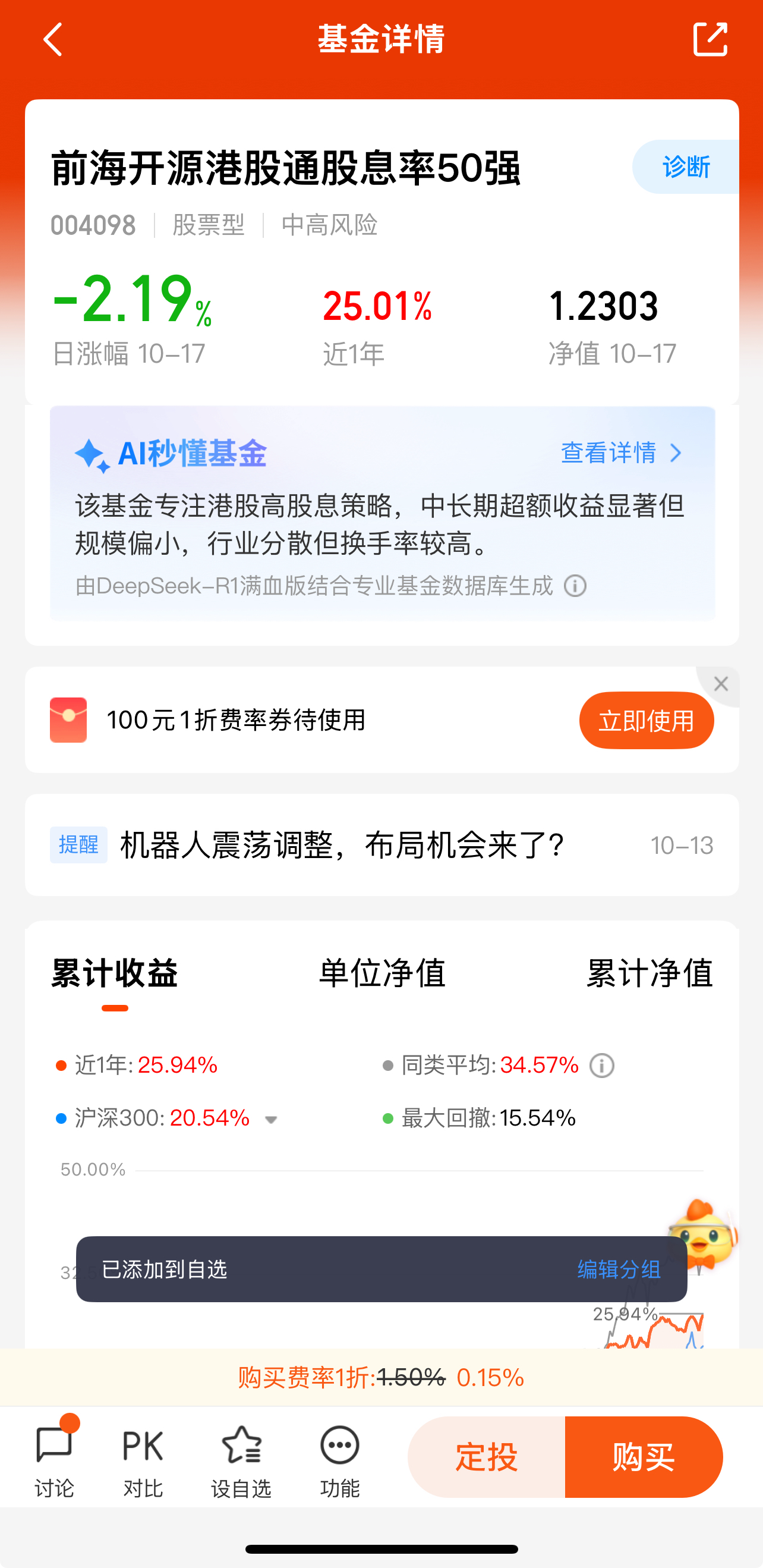 骑牛看熊比较看好前海开源港股通股息率50强(004098)的投资优势,原因如下: