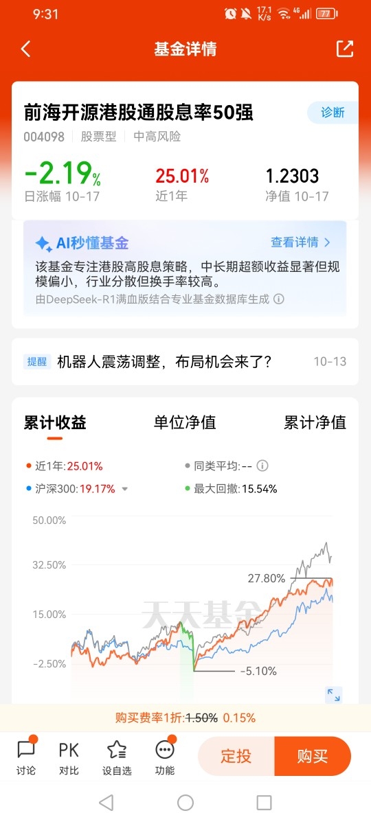 从“踏空”到坚定布局,现在我选择买入$前海开源港股通股息率50强$,长期拥抱红利资产。看着账户里科技板块的持仓一路回,红色数字一点点变成刺眼的绿色,我终于忍不住复盘这段时间的投资决策——最大的遗憾,就是当初对“红利资产”的重视太不够了。