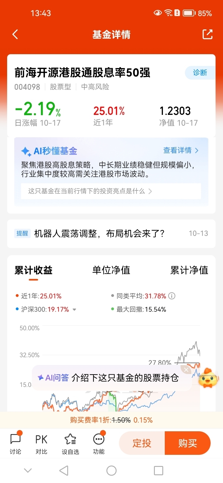 我看好港股红利,$前海开源港股通股息率50强$ 配置一点,稳健一点!
