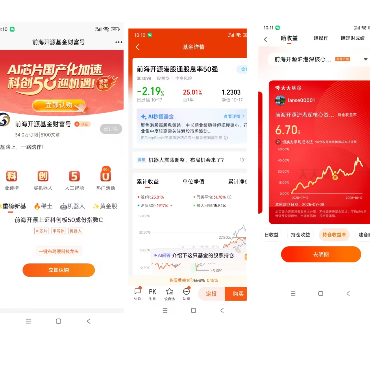 前海开源港股通股息率50强股票型证券投资基金(代码:004098)成立于2017年5月8日,是一只专注于港股通范围内高股息率股票投资的主动型基金。根据2025年最新数据,该基金规模为7111.23万元,单位净值达1.2303元,由资深基金经理王霞和王思岳共同管理。基金属于中高风险等级产品,股票资产配置比例长期维持在80%以上,主要投资于港股市场中具有持续高股息支付能力的优质企业。业绩表现方面,该基金展现了显著的收益能力与风险控制优势。截至2025年上半年,基金实现利润834.94万元,加权平均份额利润0.1112元,上半年净值增长率达10.91%。从中长期视角看,该基金业绩更为突出,近一年年化收益率25.01%,近三年年化收益率13.23%,分别超越同类基金40.33%和86.21%。在风险调整后收益方面,基金近一年夏普比率1.35,优于58.95%的同类产品;近三年夏普比率0.5683,在同类基金中排名前列(3/9)。回撤控制是该基金的另一大亮点。基金近一年最大回撤为-15.54%,近三年最大回撤-24.34%,分别超越54.19%和88.53%的同类基金。特别值得注意的是,在2024年三季度市场调整期间,基金单季度最大回撤控制在-15.57%,凸显其在震荡市中的抗跌能力。这种稳健表现得益于基金经理对仓位的前瞻性调整,如在2025年下半年策略中明确表示将"更加谨慎,降低仓位应对可能出现的回调"。表:前海开源港股通股息率50强基金核心业绩指标