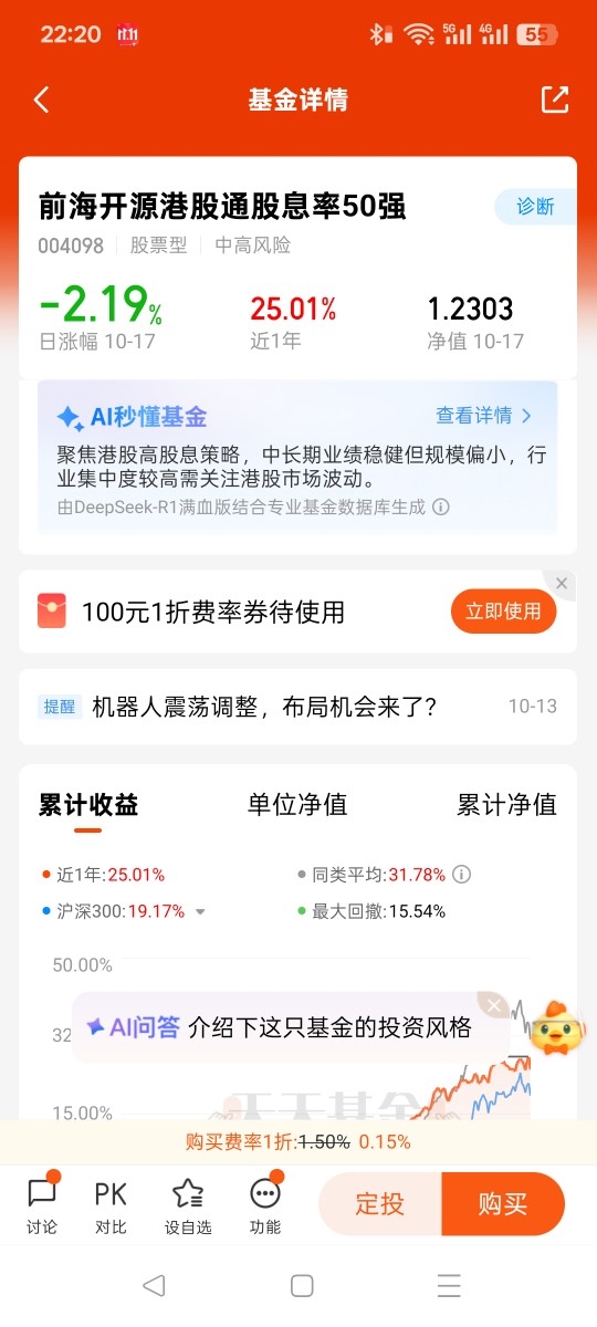 #基金测评# #红利基金最近这么火!能上车吗?# 我已经$前海开源港股通股息率50强$ 加入自选,我对红利资产的观点是,在当前低利率、经济增长放缓且市场波动较大的环境下,红利资产具有较高的投资价值。一方面,红利资产能提供稳定的现金流回报,在银行定存利率和万能险结算利率持续下滑的情况下,其较高的股息率对投资者有很大吸引力。另一方面,红利资产通常是业绩稳定、现金流充沛的企业,具有较强的抗风险能力,能在市场动荡时起到一定的防御作用。