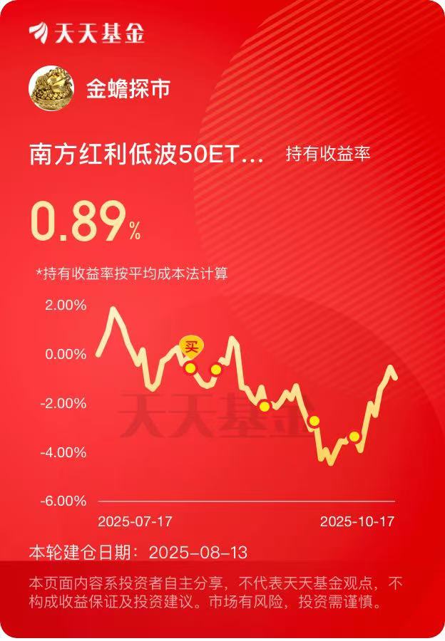 #指数操盘手集结令##晒收益##基金测评#其实我是从今年才开始琢磨加些红利类资产得,因为我持仓里成长股太多,得找个稳点的平衡一下。挑来挑去,最后入了$南方红利低波50ETF联接A(OTCFUND|008163)$和$华泰柏瑞中证红利低波ETF联接Y(OTCFUND|022951)$,现在算下来,这俩加起来大概占我总持仓的 10%。