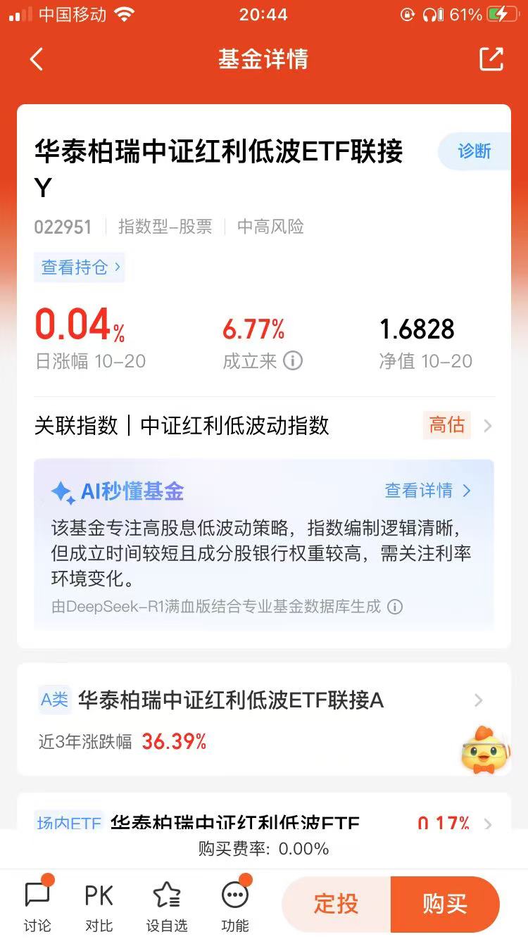 选南方那只,主要是看中它跟踪的指数成分股波动小,前十大里有不少公用事业、消费类的公司,这些行业平时不怎么折腾,分红也还算稳定。华泰柏瑞那只则是因为 Y 份额费率更低,而且它选的股更侧重 “低波”+“高红利” 双指标,想着能在拿分红的同时,少受点市场震荡的影响。