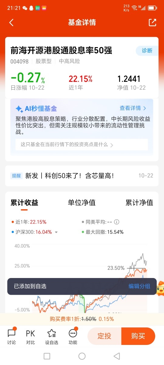 我也开始关注如“前海开源港股通股息率50强”这样的产品,它系统性地聚焦于高股息标的,帮助我们一键布局红利资产,避免了个股选择的风险。作为一名普通投资者,我愿意逐步提升红利资产的持仓比例,用耐心与纪律,在不确定的市场中,收获一份踏实与持续的增长。