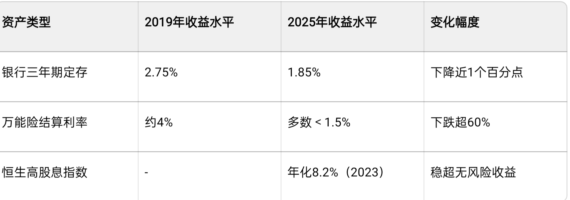 很多人把当前的低利率当作“暂时现象”,总盼着“利率能涨回去”,但事实上,从全球经济规律和国内经济转型节奏来看,低利率已经成为“长期底色”,这也是我们必须配置红利资产的根本原因。从国内来看,2019年至今的利率下行,不是央行“临时放水”,而是为了降低实体企业融资成本、刺激消费和投资的“必然选择”。用一组数据更直观感受这种变化: