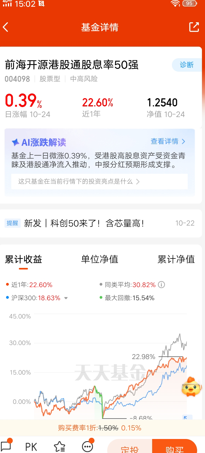 $前海开源港股通股息率50强$ 成立于2017年5月8日,基金经理王霞,王思岳,成立至今收益率25.40%。今年以来上涨25.54%。该基金投资的是港股市场。该基金是选择港股市场股息率前50家公司作为投资标的。红利资产具有股价高时,股息率就变低,当股价低时,反而股息率高,所以买入的都是股价相对低估的股票。@前海开源基金
